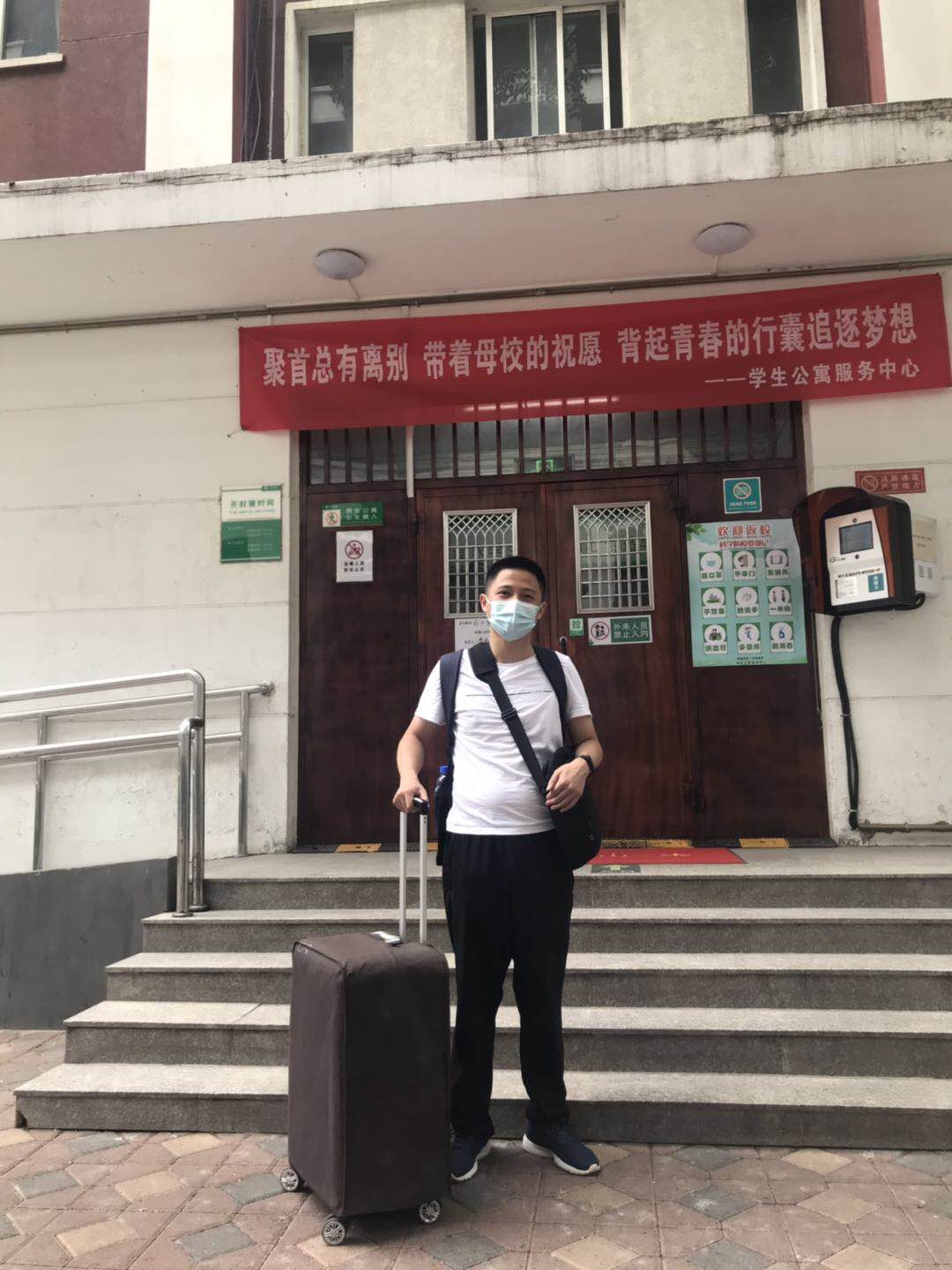 6月9日上午9点,历史学院迎来了首位返校毕业生胡龙同学,赵云慧副书记、潘若天老师到校门口迎接。胡龙按照“一查二验三测四通过”入校。入校后,赵云慧副书记、潘若天老师及时开展宿舍走访,详细了解学生情况,传递关怀温暖。临别之际,胡龙同学对学校和学院的悉心安排表示诚挚的感谢。