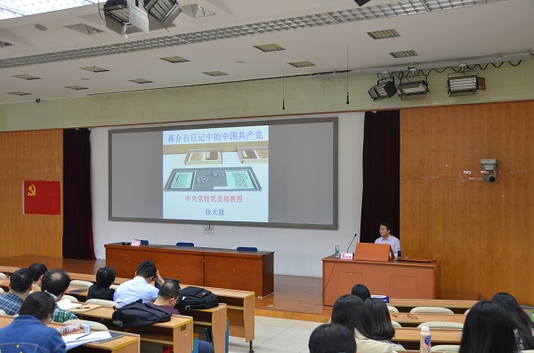 4月7日下午,开云线上平台(集团)官方网站二级党校在教九楼502室举办题为“蒋介石日记中的中国共产党”专题讲座。本场讲座由中共中央党校党史教研部副主任张太原教授担任主讲,来自历史学院和古籍与传统文化研究院的近200位教工与学生党员以及入党积极分子参加了此次讲座。讲座由历史学院分党委书记郭家宏主持。