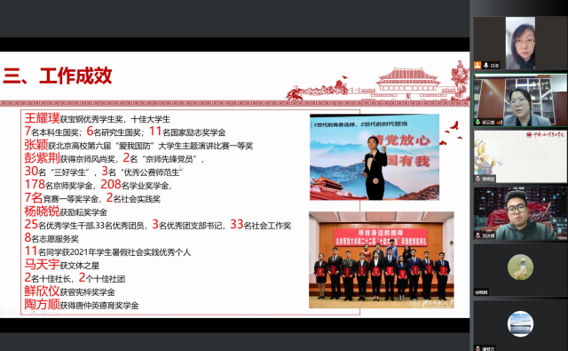 其后,白洁也对中国人民大学历史学科发展、思政建设、学生工作等方面进行了简要介绍,并由刘洪昌、郭相宜对负责领域进行详细阐述。