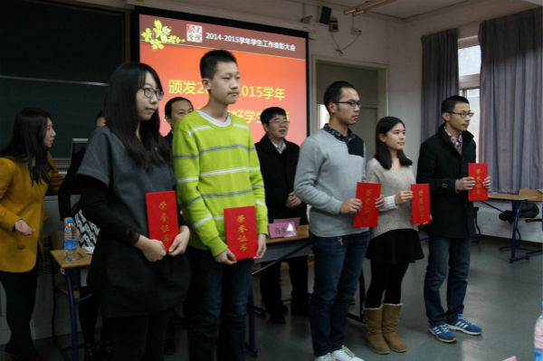 大会首先由耿向东老师致辞并宣布2014-2015学年国家奖学金、国家励志奖学金、专业奖学金、研究生奖学金、专项奖学金获得者以及三好学生名单。胡小溪老师宣读2015年度白寿彝史学论著奖·本科生奖获奖名单;耿向东老师宣读校级学生工作教师获奖名单;王卓凯老师宣读各项校级获奖名单、历史学院学生工作获奖名单。院长杨共乐老师、分党委书记耿向东老师、分党委副书记王卓凯老师、分团委书记胡小溪老师为获奖代表颁奖,并与获奖代表合影留念。