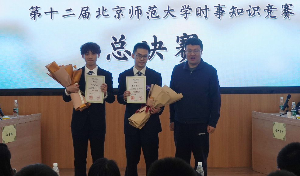 经过激烈角逐,新闻传播学院代表队获得冠军;法学院代表队获得二等奖;外国语言文学学院代表队与历史学院代表队获得三等奖;文学院、全球变化与地球系统科学研究院、法学院获得“最佳组织奖”;新闻传播学院代表队杨新頔和法学院代表队胡俊杰获得“最佳风采奖”。刘涛、牛小游、祁雪晶等嘉宾分别为获奖代表队与学部院系颁奖。
