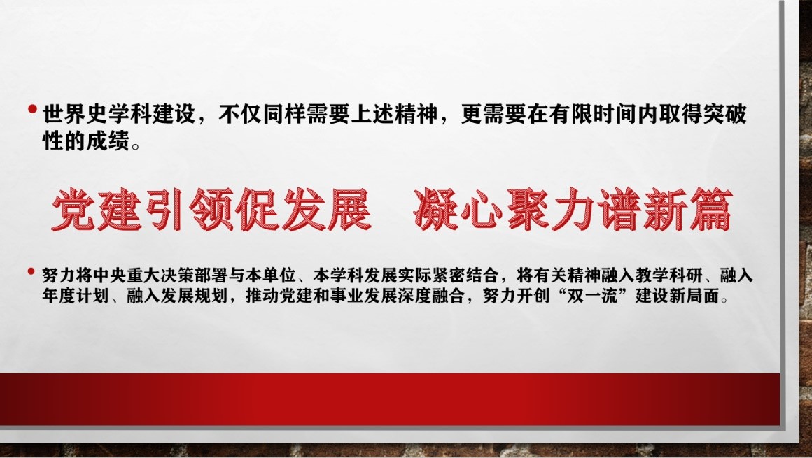 这次会议是“知彼知己”的总结会,也是新一年的动员会。老师们坚定决心,深入落实习近平同志在人民大学的讲话精神,为建设更好的世界史学科努力奋斗。