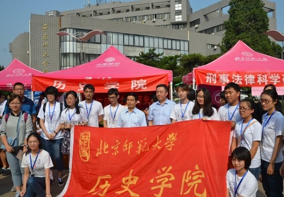 9月3日是我校2017级新生报到日。历史学院院长杨共乐老师、分党委书记郭家宏老师、副院长李帆老师、副院长姜海军老师、分党委副书记王卓凯老师,以及2017级本科班班主任陈殿老师、李力老师,2017级硕士班班主任王广坤老师、胡小溪老师,2017级博士班班主任顾晓伟老师与同学们一道在京师广场喜迎新生。