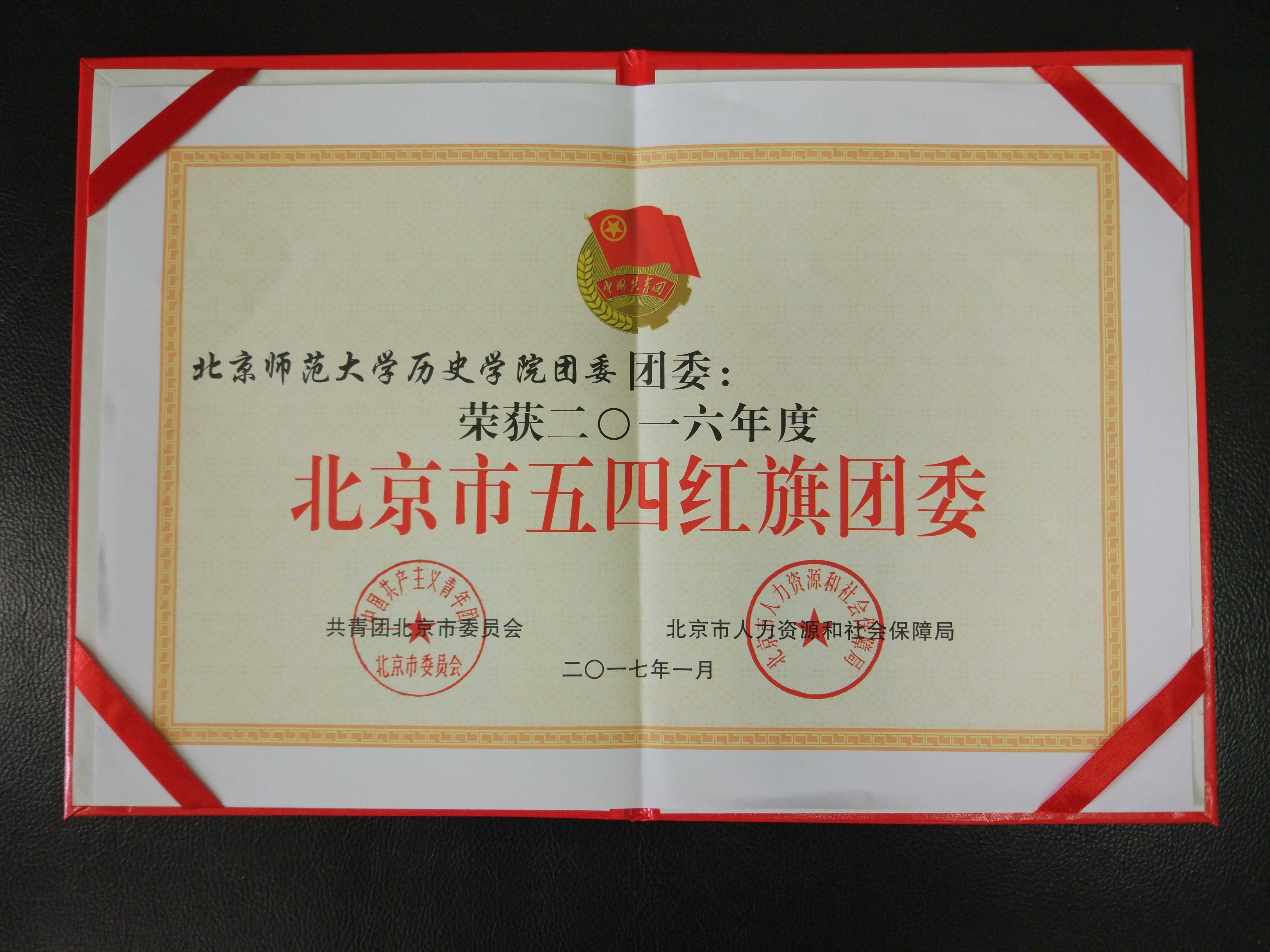 2016年,历史学院分团委在校团委和学院分党委的领导下,认真贯彻落实党中央、市党委的群团工作会议精神,按照市党委和团中央的工作部署,围绕中心、服务大局、服务青年,推进共青团工作创新发展,团结带领广大团员青年投身首都经济社会建设,被授予“北京市五四红旗团委”的荣誉称号。