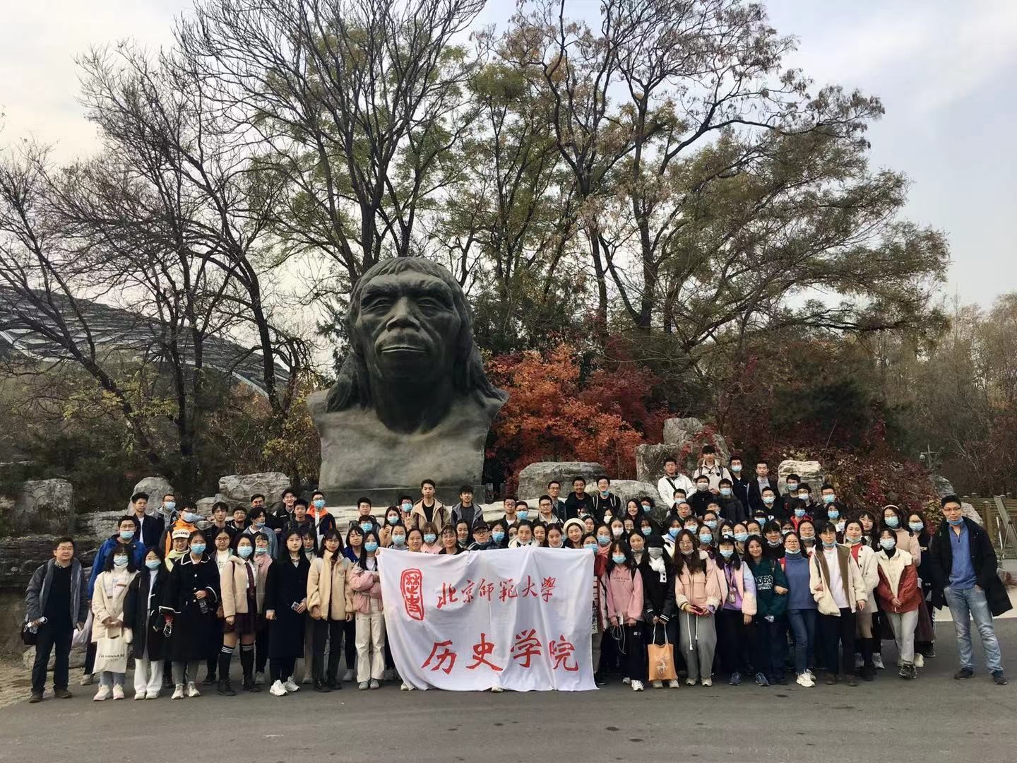 2020年11月15日,在任课教师凌文超老师,班主任张辞修、徐晓枫老师以及助教崔安珑、常智中的带领下,2020级本科班“中国古代史(上)”课程教学班的同学一行108人,前往周口店遗址及博物馆、首都博物馆开展教学参观活动。