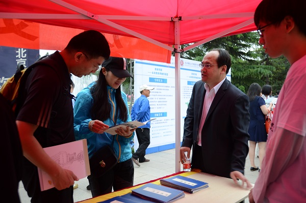 2018年5月20日上午,北京师范大学校园开放日活动暨2018年高考招生咨询工作在京师广场顺利举行。历史学院副院长姜海军老师、分团委书记胡小溪老师、本科生教学秘书刘瑶老师、专职辅导员李力老师来到了活动现场,与京籍本科生一起,积极配合学校组织安排,圆满完成了活动任务。
