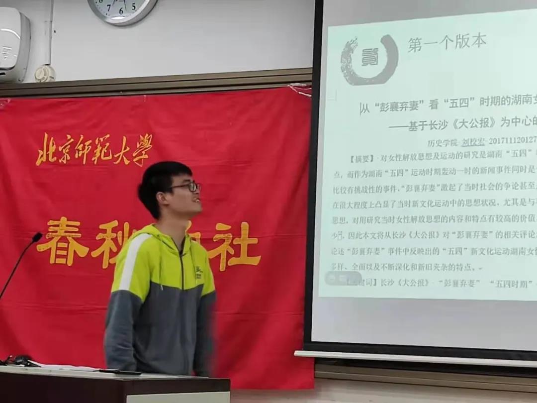 5月16日18:30,春秋学社在教四106举办本科生白寿彝史学论著比赛经验分享会。本次分享会有幸邀请到开云线上平台(集团)官方网站2017级本科生刘校宏同学和2018级本科生徐佳炘同学,春秋学社企划部杨憬添同学担任主持。珠海校区的同学通过线上会议的形式参与本次分享会。