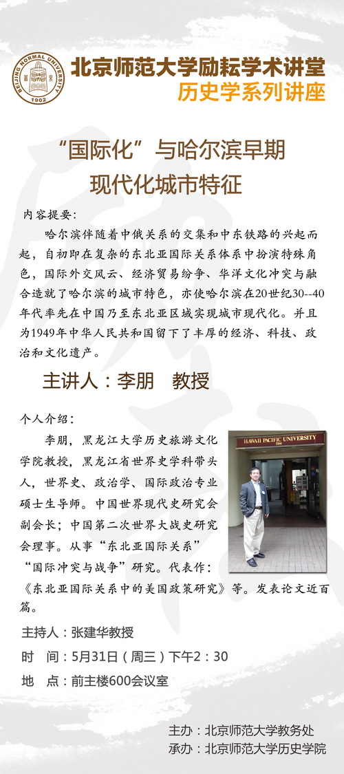 【励耘讲堂】李朋:”国际化“与哈尔滨早期现代化城市特征