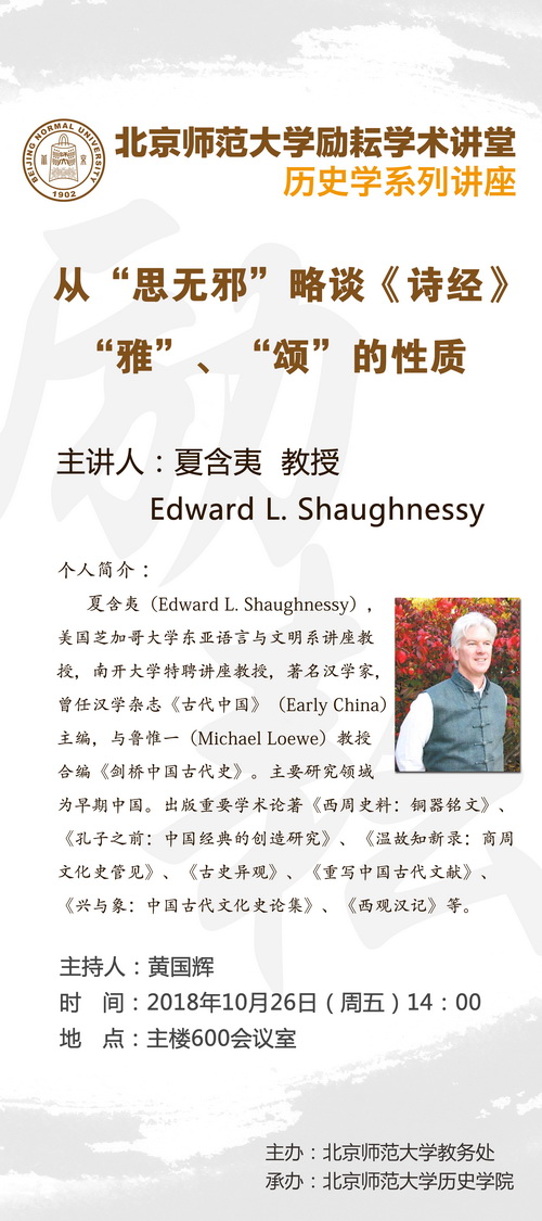 【励耘讲堂】夏含夷:从“思无邪”略谈《诗经》“雅”、“颂”的性质