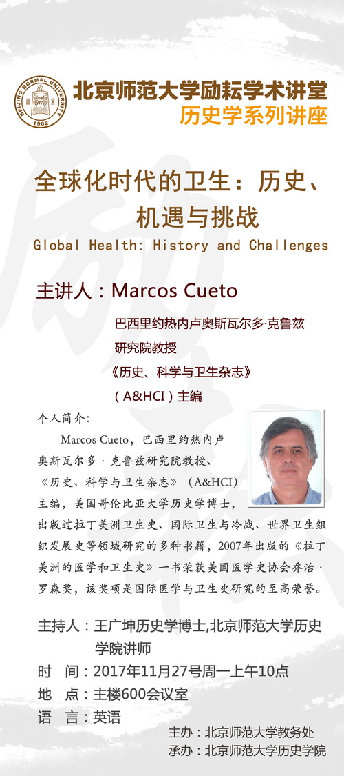【励耘讲堂】Marcos Cueto:全球化时代的卫生:历史、机遇与挑战