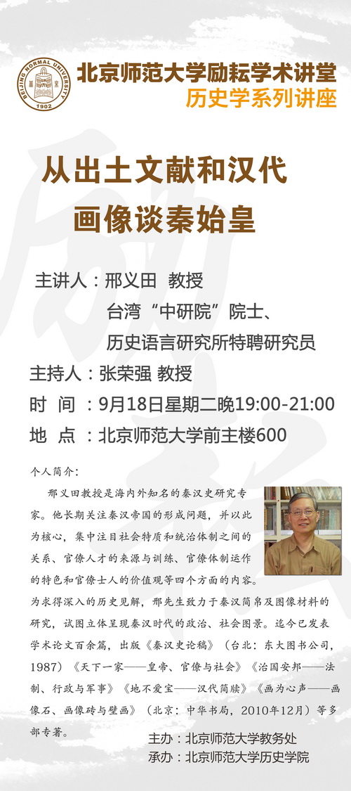【励耘讲堂】邢义田:从出土文献和汉代画像谈秦始皇