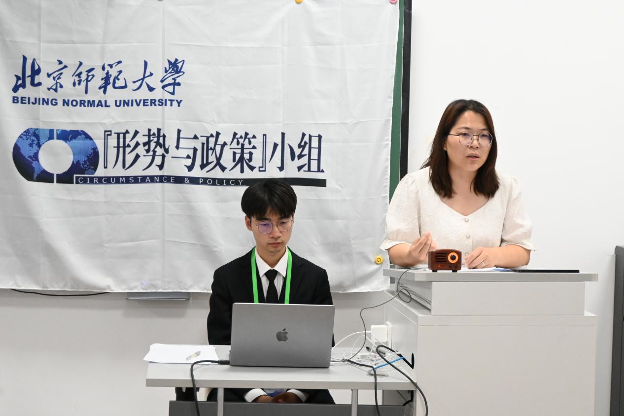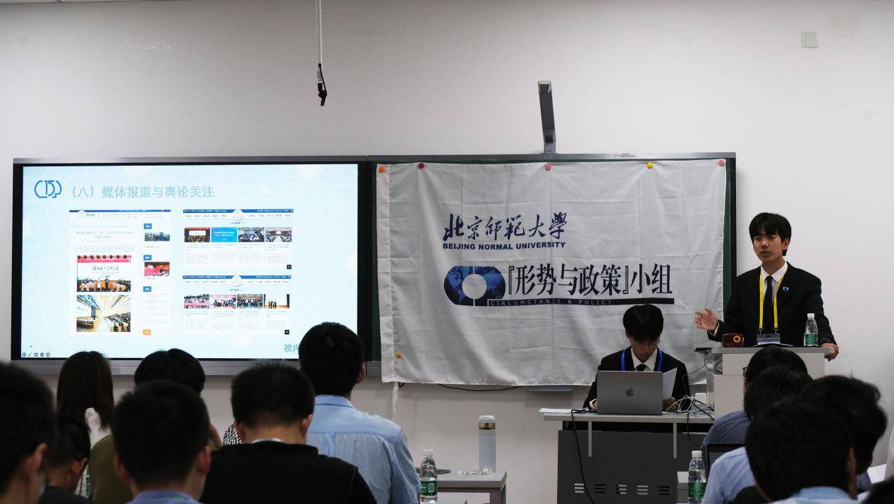 总结会正式开始前,与会师生共同观看了2022-2023年度“形势与政策”小组“新闻串播”节选和总结视频,回顾小组过去一年的工作与活动。第十六届“形势与政策”小组组长李远哲作《开云线上平台(集团)官方网站“形势与政策”小组2022-2023年度工作报告》,全面总结了“形势与政策”小组本学年工作。《报告》指出:本学年,“形势与政策小组在学校和学院的悉心指导和大力支持下,继续推进体制机制创新和可持续发展,强化团队文化建设和品牌认同,探索“第二课堂”延展和“第二集体”建设同向同行,获得了校内外媒体关注。小组着力于组织建设,强化内部凝聚力,以扎实的时事学习研究为基础,带动成员在能力培养中强化归属体认;积极配合学校形势与政策课程建设,同时大力推进校外实践与国际友好交流,在校际交往中巩固了同兄弟团体的友谊,成绩斐然。小组成功举办“News Today”环球论坛第十七场,“博古通今 胸怀天下”第十二届北京师范大学时事知识竞赛,“博古通今 胸怀天下”第十三届北京师范大学时事知识竞赛以及“古今世界 天下大观”——世界主要发达国家国情系列讲座等品牌活动,为小组建设积累了丰富经验。2022年,小组迎来十五周年生日,无论是公众号推送中组史回忆中的拳拳深情,还是周年晚会上的精彩表演,都进一步深化了小组成员情怀。一年以来,小组受到媒体广泛关注与报道,在校内外均引起良好反响。