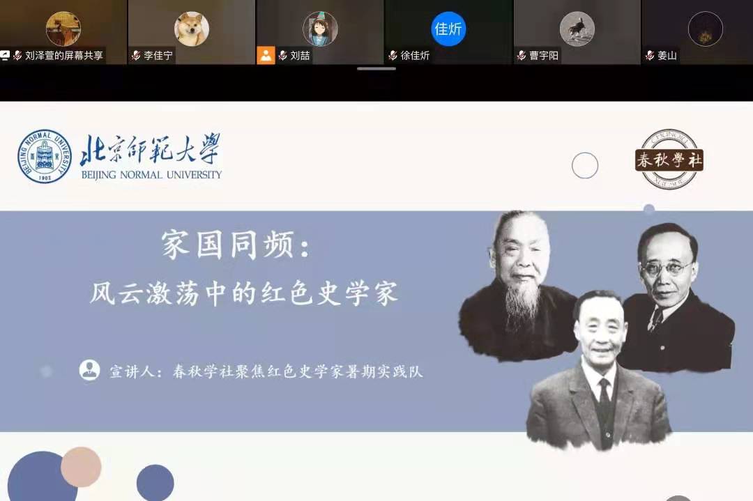 2021年7月21日至25日,春秋学社响应党中央开展党史学习教育,学好“四史”的号召,组织队伍进行了“春秋学社聚焦红色史学家”暑期社会实践。在充分前期准备的基础上,队员们通过多种形式了解郭沫若、侯外庐、陈垣三位史家认识并确立马克思主义信仰的心路历程,探寻他们勤奋治史的学术轨迹,聆听他们修身齐家的家风故事,深入体悟他们的求真理想和爱国情怀,并通过宣讲活动将所思所感传递给更多同学。行程充实,收获颇丰。