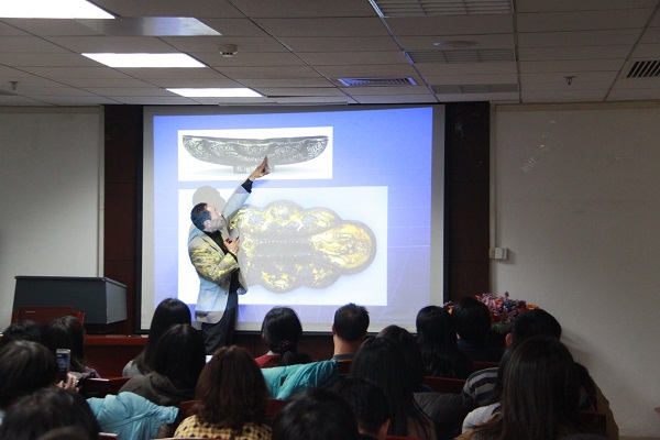 2014年12月28日下午,我院志愿讲解队协助四月公益于北京师范大学主楼600成功举办系列讲座一一印象·丝路:聊聊那些文物的“故事”。主讲人为北京大学考古文博学院教授齐东方老师。开云线上平台(集团)官方网站的陈殿老师出席此次讲座。