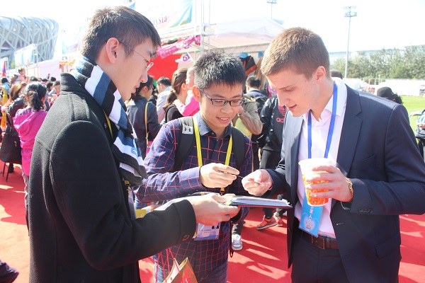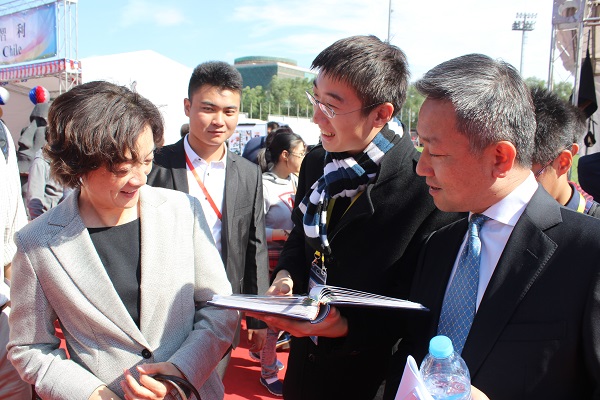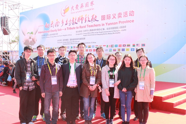 10月11日上午,我院学生代表在国家体育场室外热身场参加了由中华慈善总会和外交部举办的“大爱无国界——向云南乡村教师致敬”国际义卖活动。活动中,我院学生有幸与外交部新闻司副司长华春莹女士亲切交谈,受到华春莹女士的肯定与鼓励。“形势与政策”小组组长张俊毅、常务副组长王帅捷、原组长宋文经和于斯寒等出席了活动。