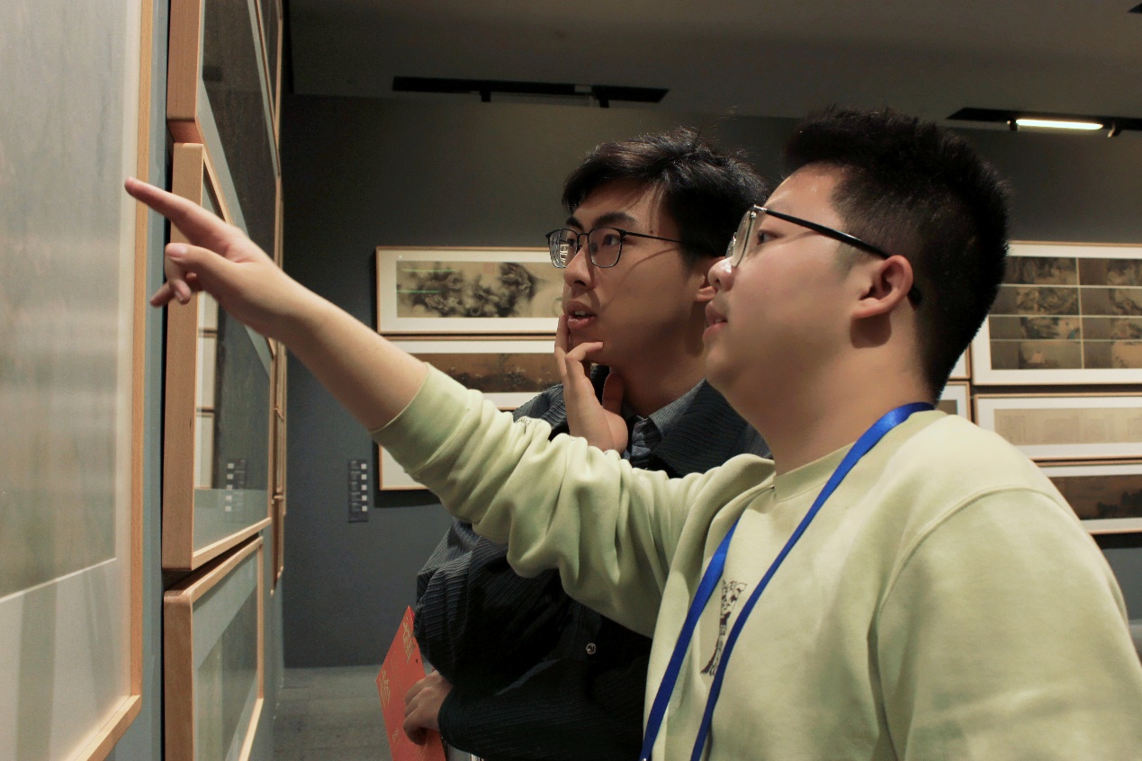 在观展过程中,同学们不时驻足,欣赏名画的图案细节,讨论其中的重要元素,探求历代绘画的独特文化内涵与思想内蕴。从先秦到明清,我国绘画体系不断完善,内容不断丰富,绘画技艺也渐趋精细化。本次展览对中国古代绘画发展历程进行了详细梳理,使同学们能直观地透过绘画把握时代风潮与思想脉络,开拓思想维度,提升精神境界,为日后的学习与研究打下坚实的基础。