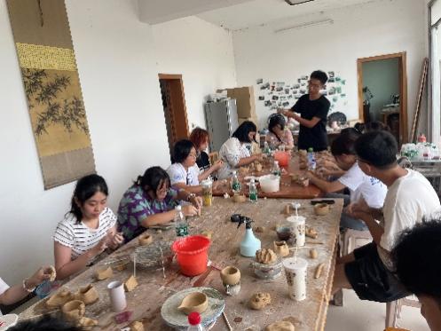 上午,实践队成员学习了青花绘画技术,下午,大家学习了手捏陶土制碗、摆件、杯子等,收获了许多独具匠心的作品。