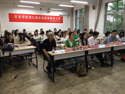 经过初赛的选拔,共六名同学进入本次决赛。决赛赛制为每位选手进行十五分钟的片段教学,评委们根据教案和教学展示两部分对选手进行综合评分,其中教学展示环节包括教学内容、教学组织、教学语言与教态、板书等。各位选手通过精心制作的多媒体课件辅助教学,授课时饱含热情、教态自然;讲述时语言流畅、思路敏捷;他们各有所长,或声情并茂,或条分缕析,或慷慨激昂,或幽默诙谐,他们的精彩表现赢得了在场观众和评委们的阵阵掌声。经过近两个小时的比赛后,五位评委依次进行点评,评委们首先肯定了六位选手的努力和表现,接下来从选题、教学内容设计、课堂组织、教学语言、教态、板书和课件制作等角度作出点评和指导。其中王信老师围绕中学历史教学的核心素养,强调须加强老师和学生的互动;李霞老师依次指出了各位选手的授课特色,称赞了大家对史料选择的功底比较扎实,但需要注意信息量过大、提问缺乏层次、语速不够适中等问题;侯桂红老师主要围绕教案写法、问题导入、宏观的历史意识、教学思路以及史料的取舍和控制谈了自己的看法;郑林老师从教学实际出发,指出每个选手都达到了一个老师上课的基本要求,但由于缺乏实际教学经验,今后应当注重教与学的互动。马卫东老师则从自主感悟的角度强调对学生的引导,提出“深入浅出,积思导议,潜移默化”的教学方针,并结合各位选手的表现,对此进行了深入的阐发和诠释。