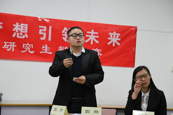 2016年11月13日上午9时,北京师范大学第十一届研究生辩论赛第一轮晋级赛在教二217教室顺利举行。这届辩论赛中,我院和心理学院携手准备,实现了强强联合。比赛中,历史—心理学院联队和水科学研究院队分别作为正反方围绕“大学排名对高等教育的发展利大于弊还是弊大于利”的主题展开辩论,最终历史—心理学院联队战胜对手,成功取得首场比赛的胜利。