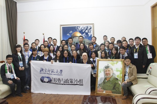 哀悼仪式结束后,同学们一起观看了巴勒斯坦使馆方面播放的一段有关中东问题的视频。部分青年学生还在使馆与公使先生、前公使先生就中国和巴勒斯坦的友好交流和互访、巴勒斯坦高等教育现状、中东地区文化遗产保护、关于如何看待目前涌现的部分伊斯兰极端组织给世界造成的印象等问题进行了交流。通过观看视频和交流,我院学生增加对许多历史问题的独立思考,在课外实践活动中补充了课堂所学的历史专业知识,加深了对阿拉法特主席的了解,也增进了对巴勒斯坦人民的理解。这次交流更使同学们深刻体会到了战争的残忍与战争中人民的苦难,同时,也使同学们对中东问题这一历史遗留问题有了更加深刻的思考。