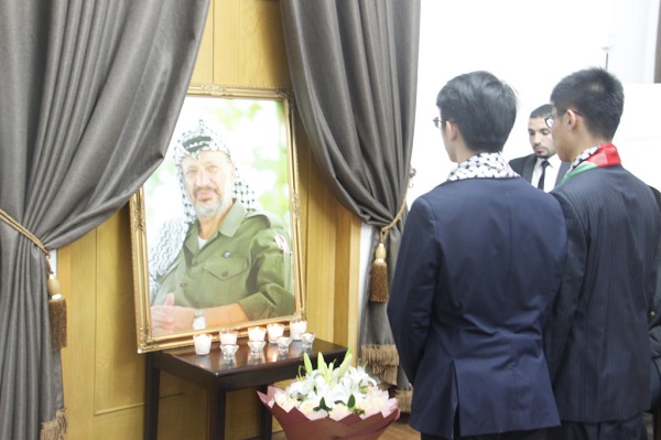 11月8日下午,应巴勒斯坦国驻华公使(临时代办)萨地·加波(Sadi Jaber)邀请,我院“形势与政策”小组学生代表赴巴勒斯坦国驻华使馆纪念巴勒斯坦民族权力机构前主席亚西尔·阿拉法特逝世十一周年。