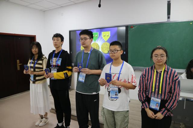 第十五届组长许宸睿、秘书长保妮、副组长兼学研专员李远哲、副组长兼外联专员杨苒君分别为新生颁发胸牌和护照。“邢予正护照”已陪伴小组进入第五个年头,护照采用汉、英、法三种语言,内页包含北师大校徽、小组标徽等设计元素、签证页的底纹为北师大各处标志性建筑。小组护照是小组成员身份的象征,也是小组成员成长蜕变的见证。