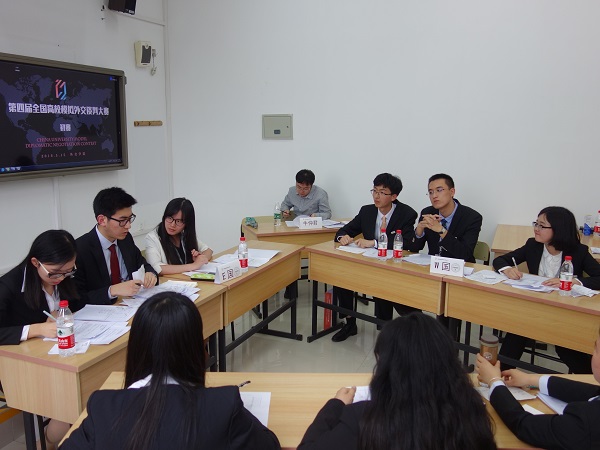 全国高校模拟外交谈判大赛是考察大学生外交素养和谈判技巧的专业性比赛。从2013年创办至今,大赛已走过四个年头。今年,北京大学、清华大学、北京师范大学、澳门大学、浙江大学、外交学院等来自全国的二十七所高校参加比赛。每支谈判队伍由三名代表组成,分别担任主谈判员、副谈判员和新闻官,参与模拟谈判。比赛以涉及谈判的热点问题为主要内容和方向,以联合新闻发布环节为补充,以培养谈判技能、提高问题解决能力为首要宗旨,运用模拟谈判比赛,并辅以论坛交流、赛前培训等其他形式,引领大学生接触、了解外交谈判,引导青年在谈判中培养全球意识、理性分析时事,鼓励当代大学生关注我国外交、关注世界格局。
