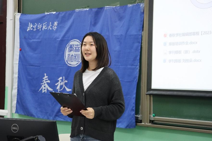 最后,社长江怡慧同学进行了发言。她回顾了自己三年来在学社的成长与收获,从最初怀着对历史学的热爱加入学社,到通过积极参与各类学术活动不断提升专业能力、深化学术兴趣。在这段难忘的旅程中,她特别感恩学社这个充满历史底蕴和人文温度的大家庭给予的滋养,希望大家在社团工作中始终怀抱对历史学的热忱,传承学社友爱互助的精神,共同书写春秋学社更精彩的明天。