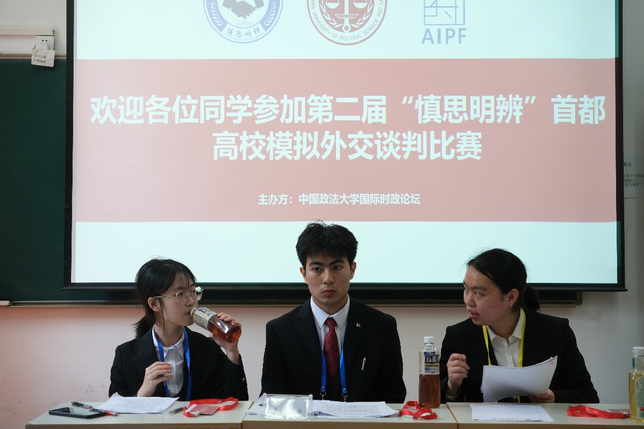 2025年4月21日,“慎思明辨”第二届首都高校模拟外交谈判比赛于中国政法大学成功举办。我校哲学学院2022级本科生余子安、历史学院2024级本科生张琰泽、樊晨曦组成的北师大代表队应邀参加比赛,历史学院2023级研究生周逸峰担任谈判赛主席团成员。“形势与政策”小组副组长吴自嵘、龙思翰、学研专员屈威洋、副秘书长伍芳娴、组长助理朱槿,高年级成员马晓羽和24级新成员代表应邀前往观赛。