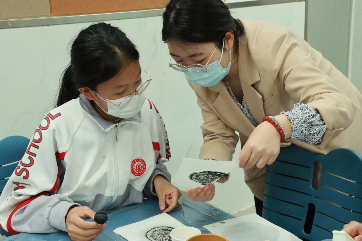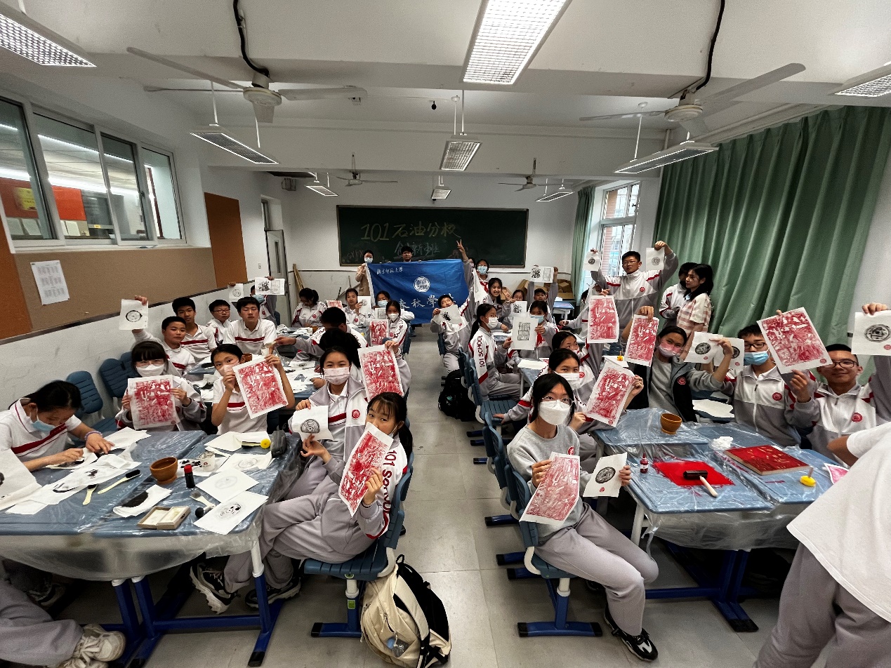 春秋学社社员走进北京一零一中学石油分校开展“纸墨留影:拓印和雕版印刷体验课”