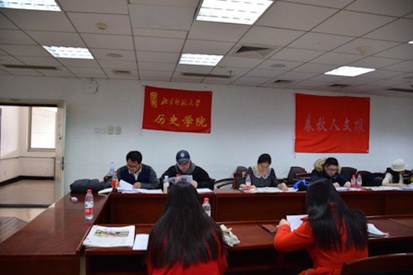 2015年3月15日下午3:30,历史学院《春秋人文报》在主楼A600组织召开了首届“首都高校大学生家史征文大赛”文章初审会。参与初审会的有《东方历史评论》李远江老师,以及我院《春秋人文报》、北京师范大学《北师青年》、中国人民大学历史学院院刊《绎思》杂志社和首都师范大学历史学院《鸣报》的学生代表。