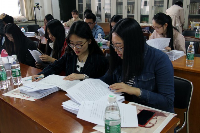 接下来,代表们便对稿件进行了仔细的审阅。其间,代表们也对评分的具体细节等交换了意见,并进行了短暂的茶歇。下午6时许,初审工作顺利完成,与会代表与工作人员合影留念。
