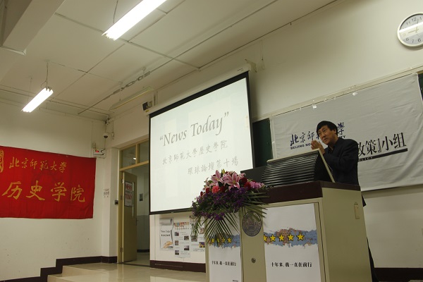 2015年12月19日晚8时,“News Today”开云线上平台(集团)官方网站环球论坛第十场在教二101 隆重举行。北京师范大学本科生工作处处长王洛忠教授,历史学院院长杨共乐教授,历史学院世界近代史教研室主任郭家宏教授,世界近代史教研室陈奉林教授、贾珺副教授,历史学院分党委副书记王卓凯老师,教育部高校辅导员培训和研修基地田震老师,历史学院分团委书记胡小溪老师,2015级本科生班主任湛晓白老师,2015级硕士生班主任曲柄睿老师,文学院专职辅导员熊艺钧老师,历史学院专职辅导员李力老师,学生事务助理周一帆老师等嘉宾莅临现场。中国国际广播电台原副总编辑、高级编辑、北京大学客座教授、中东问题专家马为公先生作为特邀嘉宾出席本次活动。
