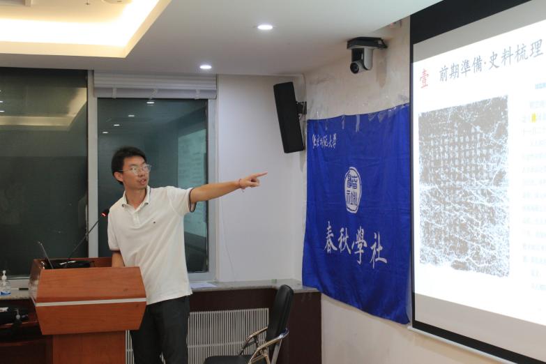 随后,陈致浩结合自身考辨沐氏家族世系的论文,分享了中国古代史论文的写作心得。在前期准备上,他分享自己通过史料阅读与实习经历发现“沐氏家族世系”选题的经历。随后,他从自身经历出发,介绍了如何广泛搜罗古今中外的史料、著作、论文,并以类别和时间顺序排列、梳理,形成“丛目”和“长编”。在论文写作上,他介绍了先进行史料比勘,再从矛盾之处着手进行分析的基本思路。并介绍了自己运用墓志、地方志等不同类型的史料层层考辨,得出诸子的排行次序的具体写作过程。此外,他还勉励大家系统地阅读史料,以做的全面了解。