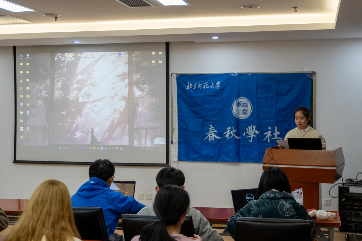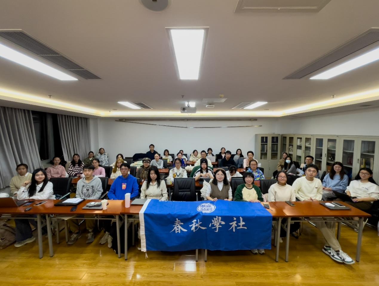 11月25日20:30,春秋学社在主楼638会议室举办了期末经验分享会,本次活动邀请到历史学院2022级本科生李濯灵、郑可莹、李晨舟三位同学作为主讲嘉宾。本次活动由春秋学社企划部肖宜佳同学主持。