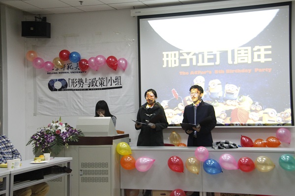 2015年10月25日晚,我院“形势与政策”小组举办成立八周年庆祝晚会。历史学院专职辅导员李力老师,从小组领导职务上退下来的老组员江天岳、张铭雨、周天一、白佳鑫、靳晓萌、宋文经、陈鸣悦、付豪、王博、谢慧娴、于斯寒、杨宇辰、莫凡、李婵娟、杨培艺,小组特聘文字审定王溪,资深院系联络员卢垚、卢正天、刘骥跃等应邀出席了庆祝晚会。来自十个年级的小组历届新老成员欢聚一堂,共同为我们热爱的小组送上了八岁生日祝福。远在英国、比利时、德国、美国、香港、台湾等国家与地区以及祖国各地的小组成员黄亮、丁旭辉、郝小雯、田天、王琳冰、裴启辰、刘心宇、苏森、高鑫、叶骏等也发来了热情洋溢的视频,同祝小组八周年华诞。