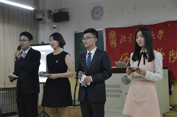 精心制作的开场视频拉开了晚会的序幕,视频集齐了同学们的新年祝福以及2017年的美好愿望。视频结束之后,李翰卿等五位同学为大家奉献了精彩的开场舞。伴随着开场舞的结束,勾宇威、房晶、杨宇辰、宋典四位主持人闪亮登场,宣布晚会正式开始,历史学院院长杨共乐老师致辞并向大家致以新年的问候。