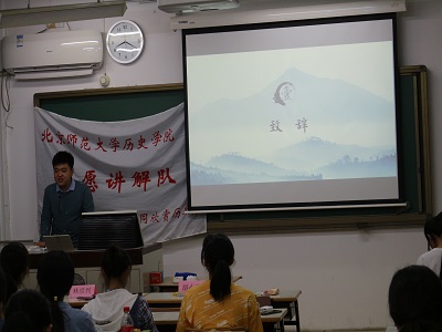 同为讲解队前任队长的2015级毕业生杨丹师姐因工作原因未能到场,但她以视频的方式寄来祝语,希望新成员们能够在大学生活中平衡好拒绝与接受。