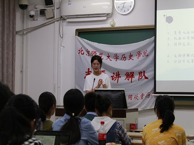 致辞环节结束后,原任讲解队队长刘铖同学简要回顾了本年度招新情况,对新成员的加入表示欢迎,同时宣布由2017级的田欣蕾同学接任讲解队新一年的队长。