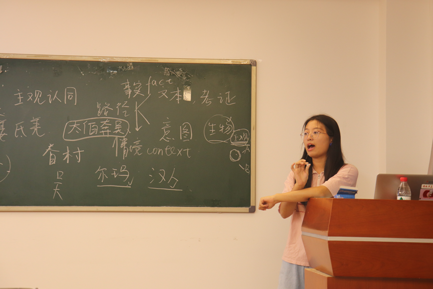 基于以上对族群的了解和理解,熊钰奇同学进一步解释了本书的两大核心理论——“集体记忆”与“边界确定中心”。族群的本质由“共同的祖源记忆”来界定及维系。“集体记忆”,可帮助我们理解人类社会的结群,如家庭、家族或民族的一些基本问题。这种理解使我们重新思考在历史研究中所重建的“过去”本质如何。“边界确定中心”理论,在方法上着重于分析历史记忆中所表达的“我群”与“他群”边缘分野及其变迁。在王明珂看来,当我们在一张纸上画一个圆形时,事实上是它的“边缘”让它看起来像个圆形。族群边界的形成与维持,是人们在特定的资源竞争关系中,为了维护共同资源而产生。熊钰奇同学提出,以上理论对史料的解读与辨析极具启示意义。在阅读史料时,我们不仅要关注史料本身,更要聚焦史学文本的产生背景与生成过程。