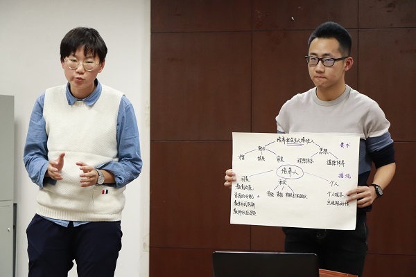 第一小组代表王馨悦从教育评价标准、教师职业尊严、家庭教育和职业教育几个角度分析当前的教育问题。第二小组代表孙小桐、邢艺璇从国家、社会、个人三个层面对“培养什么样的人”这一重要问题进行解读,同时阐释了对于“社会主义建设者和接班人”的内涵要求的理解。徐佳炘则从当前社会热点入手说明当前教育政策和社会问题的解决。刘玉萍对当前教育面临的严峻现实进行分析,旁征博引指出了办好教育的重要性。第五小组同志从教育公平、教师素质、教育评价体系和人才培养多个视角对讲话进行了解读。第六小组代表李中基、邢晓坤从教育公平谈起,分别以多个不同主体的视角讨论了教育公平的意义和落实方法。第七小组代表水添辰和鲜欣仪以关键词的形式展现小组讨论的思想火花,将讲话内容同社会热点问题相结合展示小组学习成果。