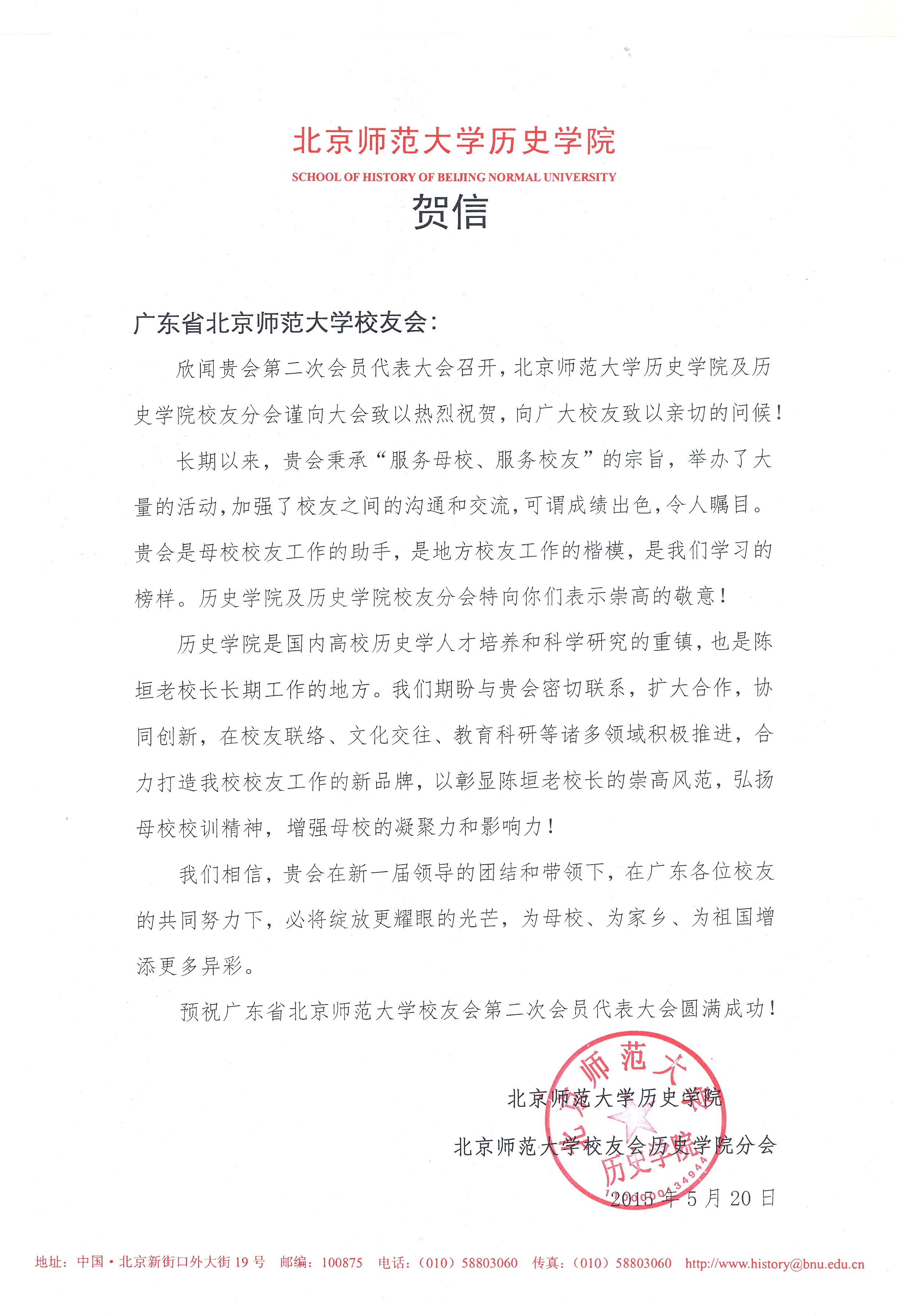 致广东省北京师范大学校友会第二次会员代表大会贺信