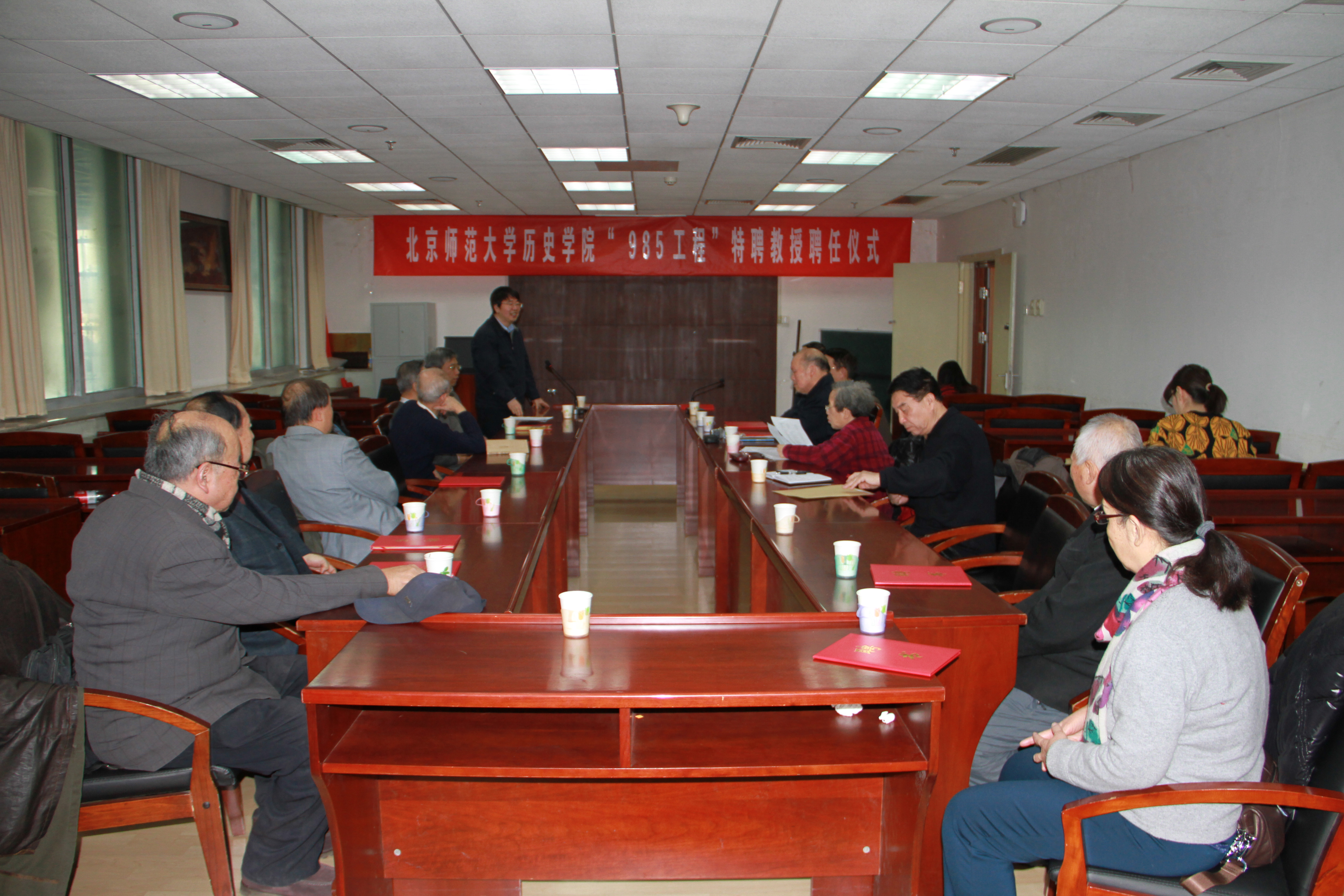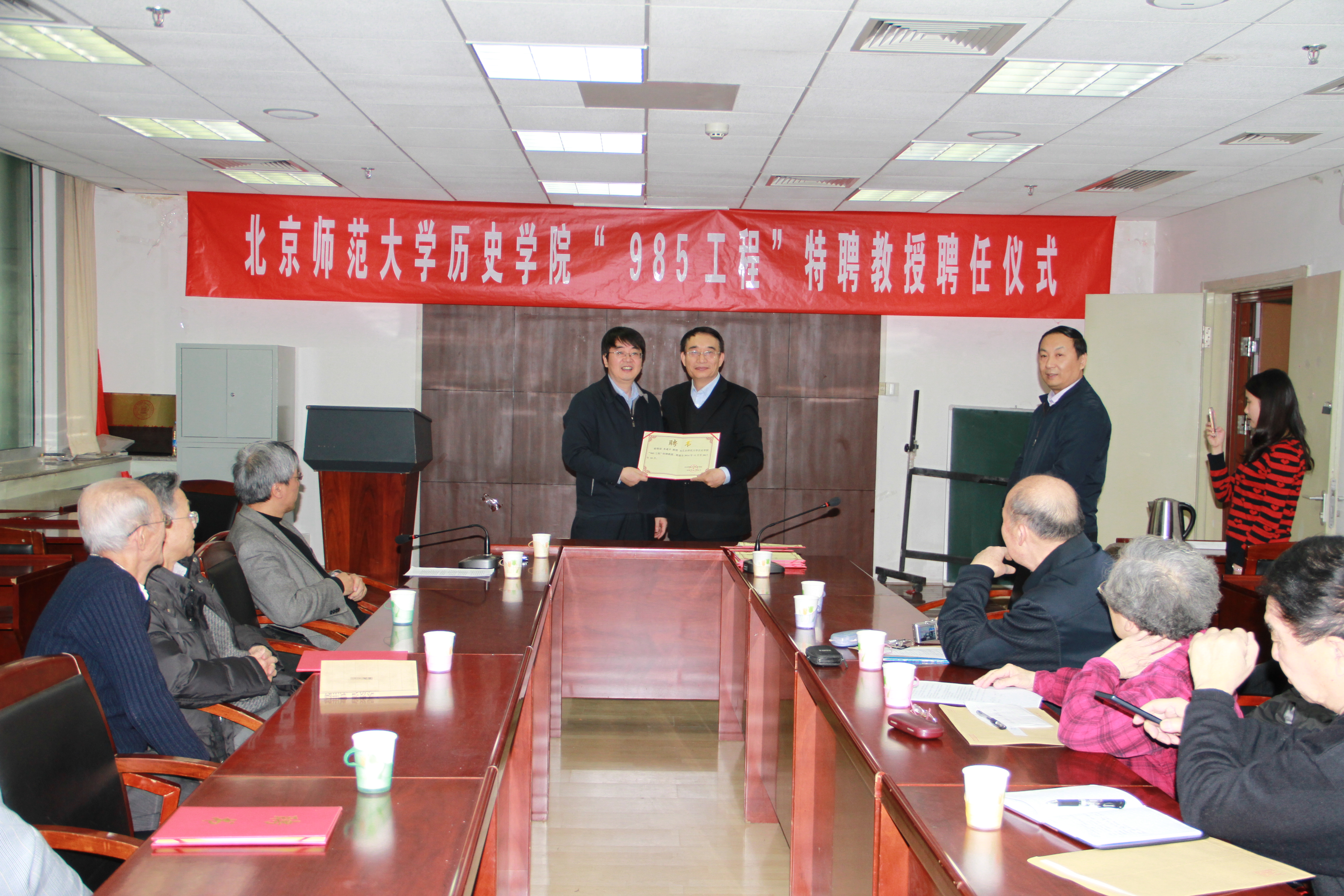 2015年1月16日,历史学院在主楼600会议室举行了“985工程”特聘教授聘任仪式和座谈会,历史学院院长杨共乐教授、分党委书记耿向东研究员、副院长李帆教授出席了会议。此次受聘并应邀前来参加座谈会的“985工程”特聘教授有乔治忠教授、曹定云教授、陈梧桐教授、刘一曼教授、王和教授、王宇信教授、陈智超教授、邹兆辰教授、廖学盛教授、李建平教授、李志英教授等。