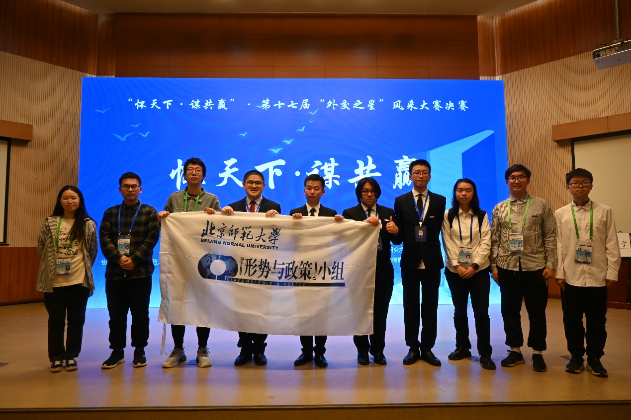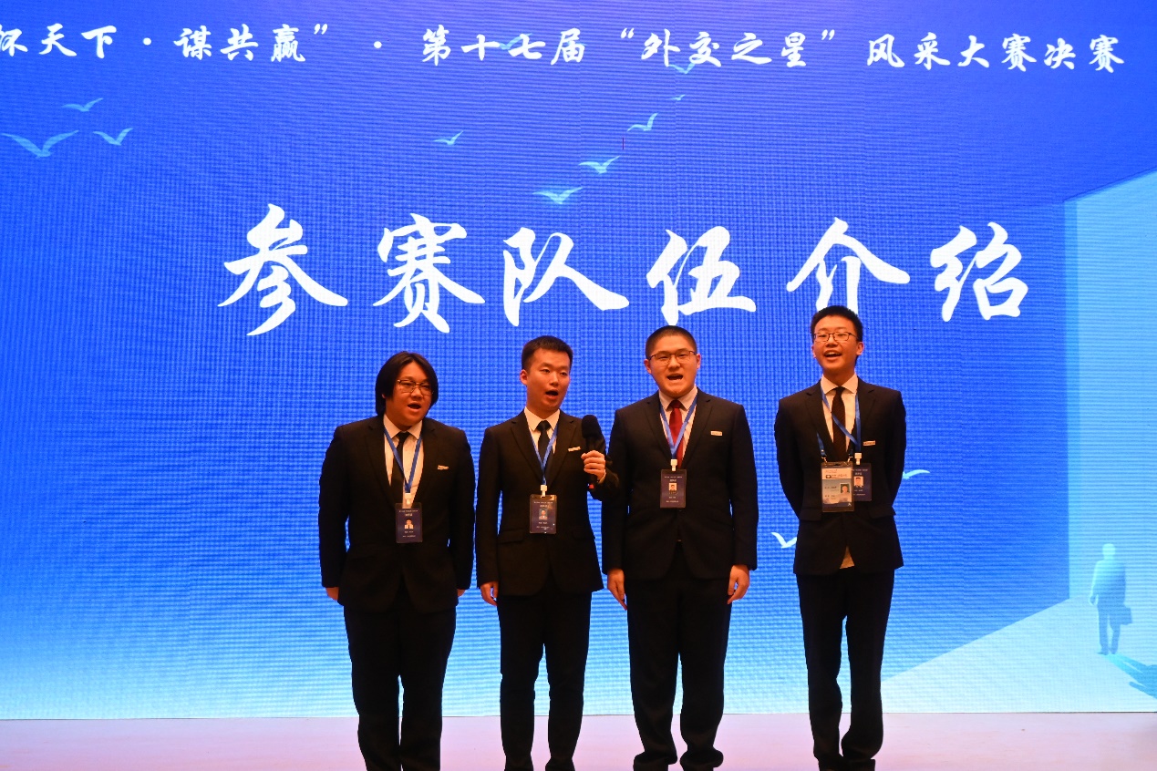 2023年5月20日晚,“怀天下·谋共赢”第十七届“外交之星”风采大赛于北京外国语大学举办。我校历史学院2020级本科生黄普凡、文学院2020级本科生吴弘亮、文学院2020级本科生张熹、文学院2022级本科生洪浩哲应邀参加比赛,荣获季军。“形势与政策”小组副组长兼学研专员张正宇、宣传专员洪子阳、外联专员牛广鹏、组长助理易珊羽等应邀前往观赛。