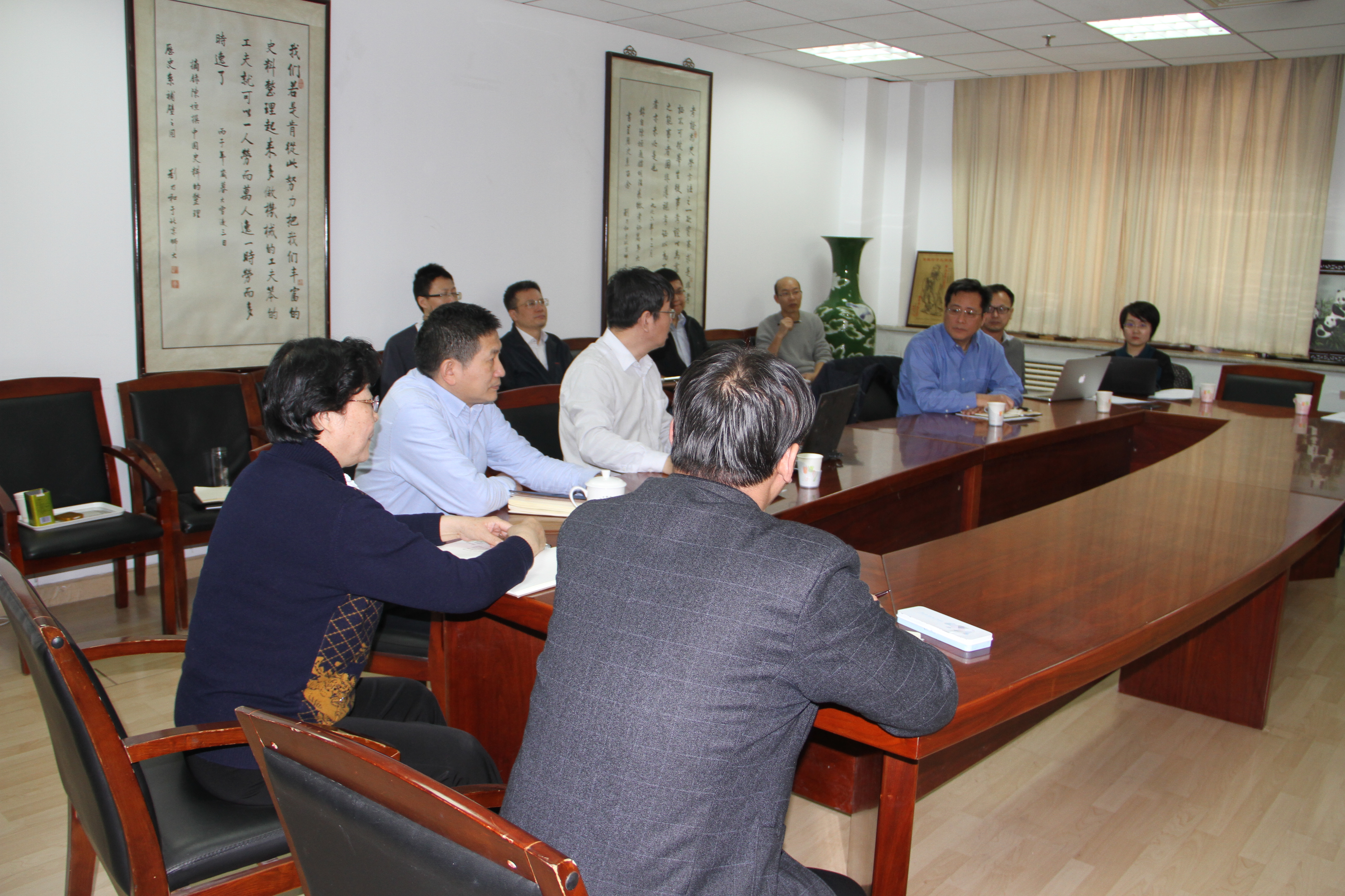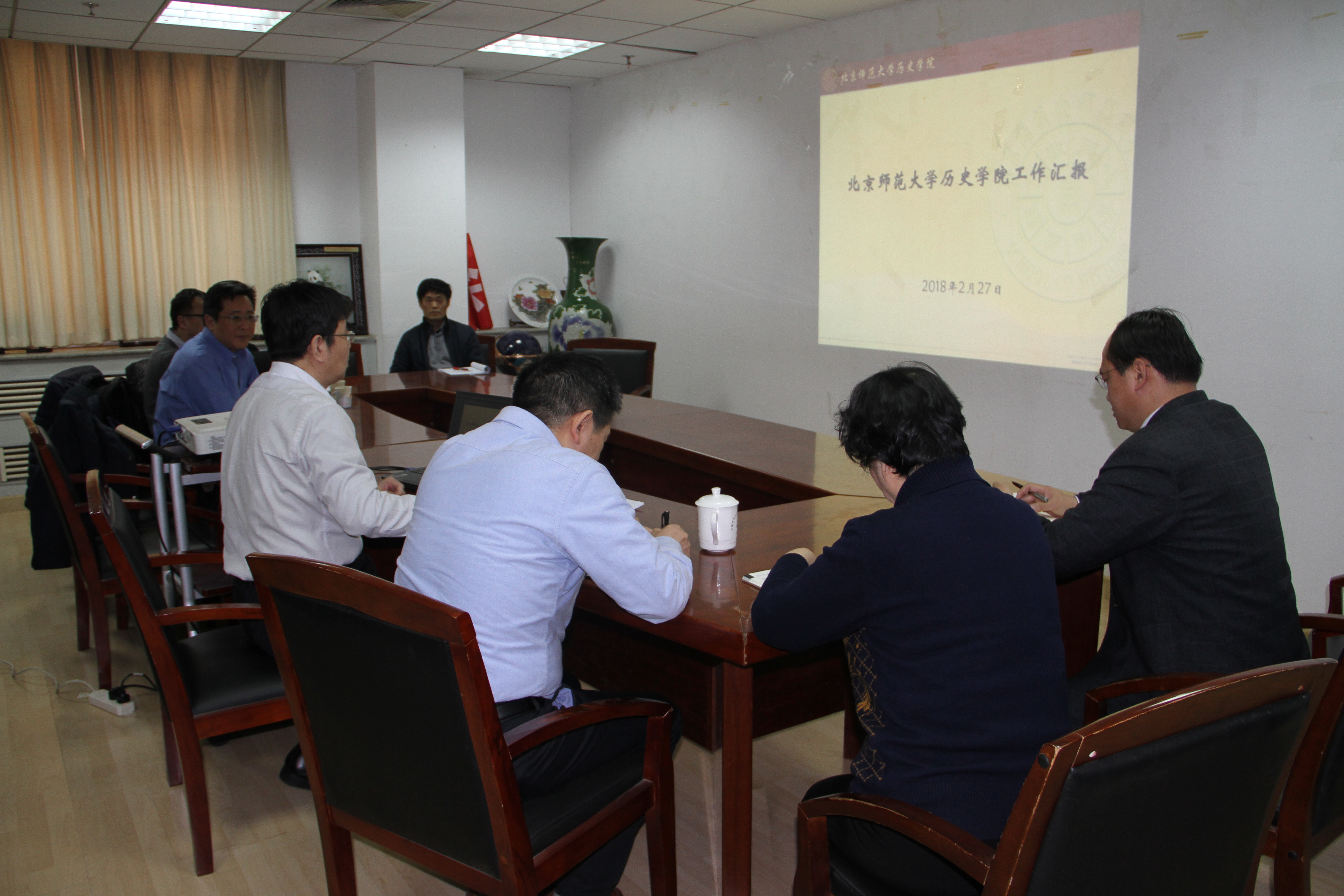 2月27日,副校长王守军视察历史学院,与学院党政负责人郭家宏、杨共乐及其他院务会成员座谈。