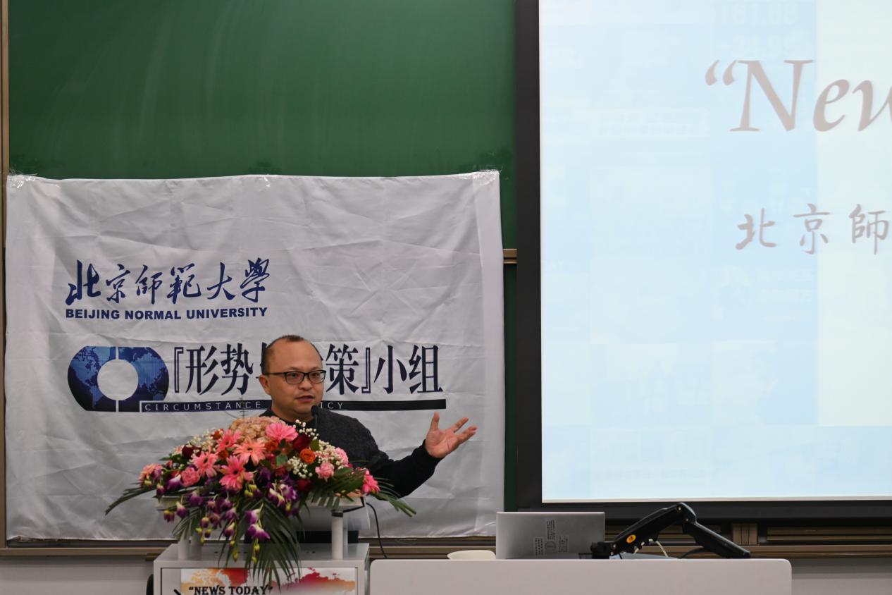 12月16日晚,“News Today”开云线上平台(集团)官方网站环球论坛第十八场在北京师范大学举行。活动由党委学生工作部、历史学院主办,“形势与政策”小组承办。历史学院院长张皓、党委副书记赵云慧、团委书记邢梦姗,历史学院专家学者、班主任(辅导员)代表,以及第二十四届北京师范大学“十佳大学生”获得者代表等参加。