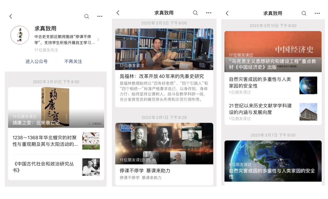 支委首先对支部近期工作做了简要介绍。作为教育部首批“全国党建工作样板支部”培育创建单位,中国古代史党支部深入学习贯彻习近平总书记“疫情就是命令,防控就是责任”的重要指示精神,切实把思想和行动统一起来,进一步充分发挥基层党组织战斗堡垒作用。面对突如其来的新冠肺炎疫情,一方面,组织自愿捐款,支部全部党员同志踊跃捐款,积极为疫情防控作贡献。另一方面,按教育部“停课不停学”的通知要求,3月1日正式开通支部微信公众号“求真致用”,推介中国古代史方面的学术资源,支持学生积极开展自主学习。同时,强调支部党员利用“学习强国”平台,做好线上学习与相互交流,认真领会习总书记关于抗击疫情、恢复生产的一系列重要讲话精神。