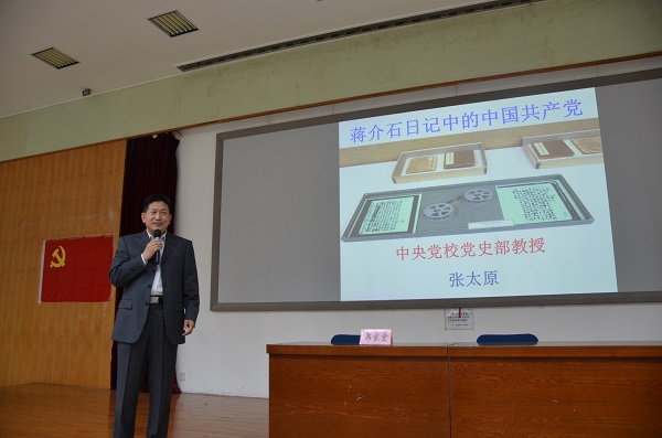 4月7日下午,开云线上平台(集团)官方网站二级党校在教九楼502室举办题为“蒋介石日记中的中国共产党”专题讲座。本场讲座由中共中央党校党史教研部副主任张太原教授担任主讲,来自历史学院和古籍与传统文化研究院的近200位教工与学生党员以及入党积极分子参加了此次讲座。讲座由历史学院分党委书记郭家宏主持。