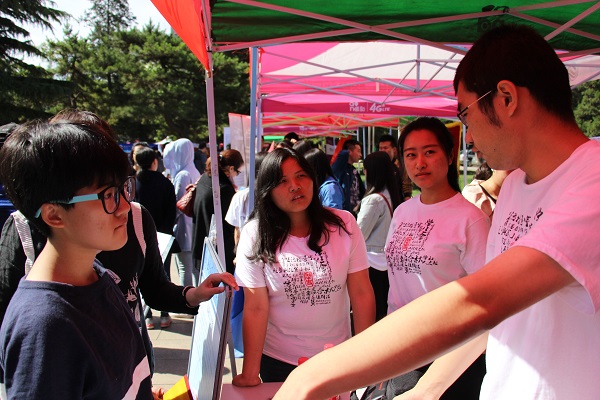 2016年5月15日上午,北京师范大学校园开放日活动暨2016年高考招生咨询工作在京师广场顺利举行。历史学院分党委书记耿向东老师、副院长姜海军老师、分党委副书记王卓凯老师、宁欣老师、黄国辉老师、陈殿老师、江天岳老师、办公室主任兼分团委书记胡小溪老师、刘瑶老师、李力老师等也来到活动现场,与本科生一起,积极配合学校组织安排,圆满完成了活动任务。 早上6点半,我院师生便开始布置展台。他们热情洋溢,团结合作,高效完成了任务。历史学院的展台布置精致,除了学院概况展示外,学院专门制作近几年北京生源毕业生毕业去向展板,方便考生家长了解情况,此外,学院分团委、学生会、春秋学社、《春秋人文报》和“形势与政策”小组等学院特色社团和组织的展板也为我院增添风采,吸引了大批学生和家长驻足咨询。面对学生和家长们对招生情况、录取分数、课程设置、就业动态、社团活动等方面的疑问,老师和同学们一一予以细致解答。他们耐心的态度,良好的专业素养以及对活动的热情得到了家长和考生的一致赞许。