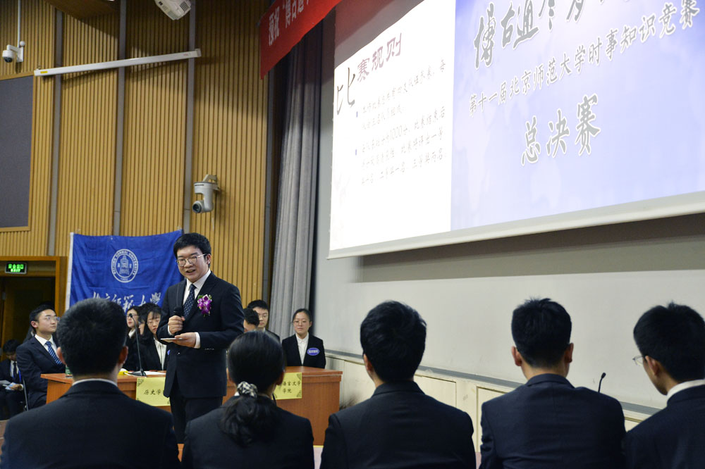 4月25日晚,“博古通今 胸怀天下”第十一届北京师范大学时事知识竞赛总决赛在敬文讲堂成功举行。